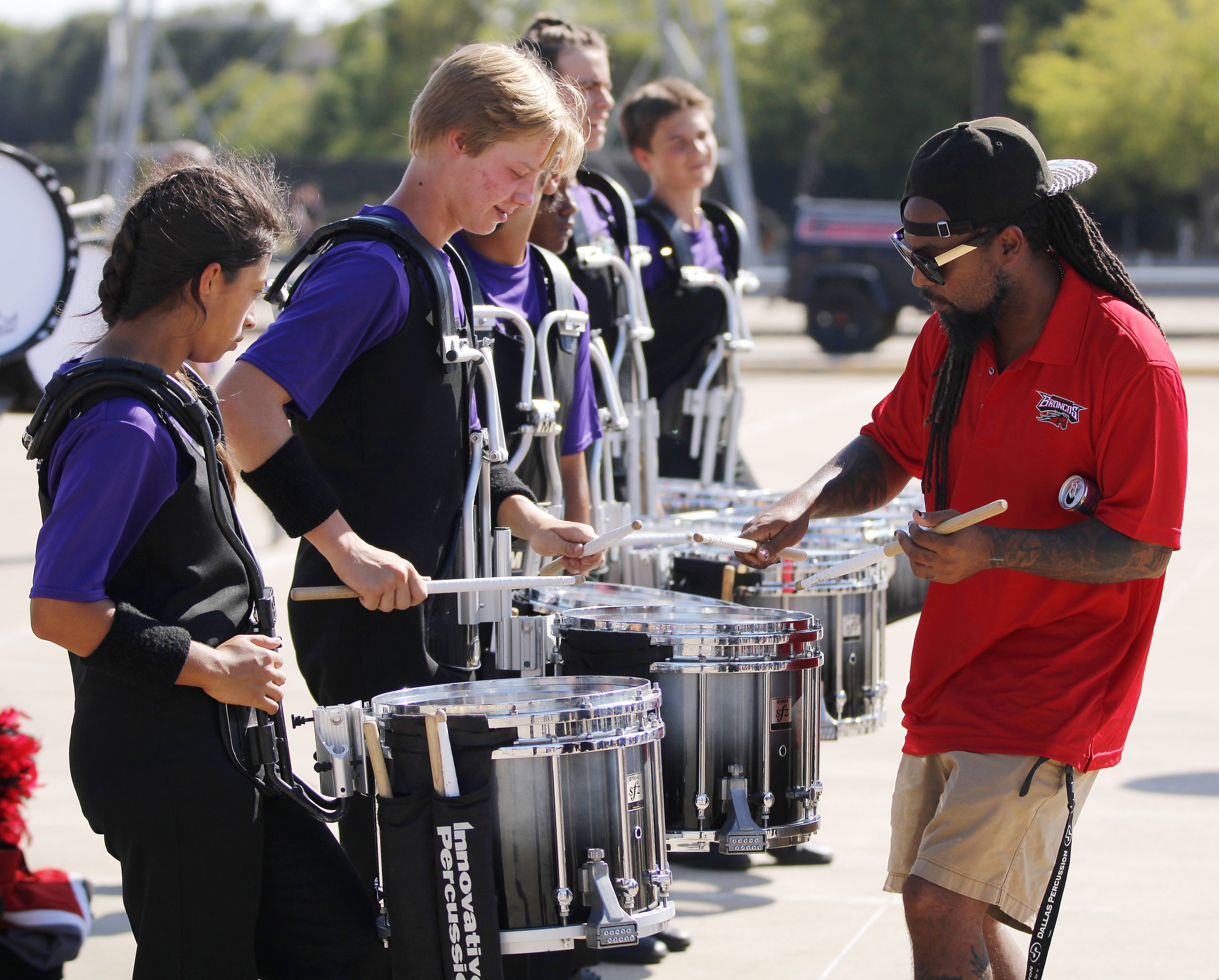 - Instructor Portfolio Rachel Dearinger Mansfield Legacy High School Mansfield, TX Caption: Technician Aaron Capers plays a drum lick with section captain Beckett Echols, 12, making a random rhythm and having a little fun between warm-up sets. This was Capers’ second year as drum technician. He worked with all percussion students throughout the year. He was a member of Drum Corps International and now performs on the Dallas Maverick Drumline with assistant band director Mr. Reynaldo Miranda.